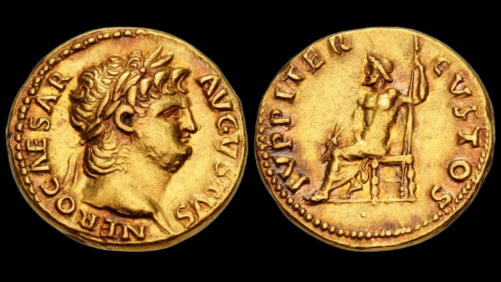 Cet aureus de Néron avec Jupiter Custos ne se contente pas d’illustrer un moment de crise : il met en scène la tentative de l’empereur de restaurer son autorité par la divinité, de se poser comme l’élu de Jupiter, protégé par les dieux contre les traîtres et les dissidents.